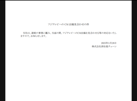 【速報】西松屋、フジテレビCM見合わせwwwwwwwwww Twitter Facebook はてブ LINE コピー 2025.01.28 スポンサーリンク 1:名無しさん@涙目です。(やわらか銀行) [JP]:2025/01/28(火) 14:23:13.08 ID:qznQUm//0 BE:971283288-PLT(13001) 3:名無しさん@涙目です。(庭) [DE]:2025/01/28(火) 14:23:56.21 ID:NwW+fDKF0 悪目立ちしてたもんな 33: 警備員[Lv.5][新芽](神奈川県) [NO]:2025/01/28(火) 14:30:02.18 ID:bjLayQ4W0 >>3 クレーマーのおもちゃに 5:名無しさん@涙目です。(大阪府) [JP]:2025/01/28(火) 14:24:13.29 ID:BliDc70T0 赤ちゃんの店かまあ妥当か 続きを読む