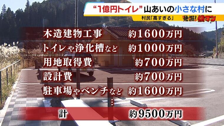 このトイレ、かかった費用は駐車場の整備なども含め約9500万円で、一部の村民からは『1億円トイレ』と揶揄されています。