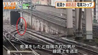 痴漢で捕まったリーマンが線路に逃げた時