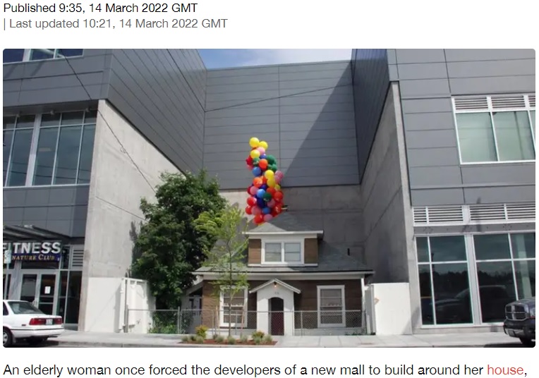 米ワシントン州の大きなショッピングモールの一角に、普通の民家がたたずむ光景が話題を呼んでいる。この民家に住む女性が立ち退きを拒否し続け、建設業者らが仕方なく女性の家を器用に避けるようにしてショッピングモールを建てた結果だった。