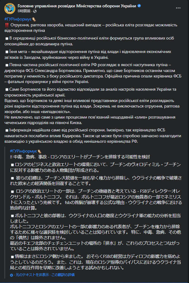 Russia's elite wants to eliminate Putin, they have already chosen a successor - intelligence