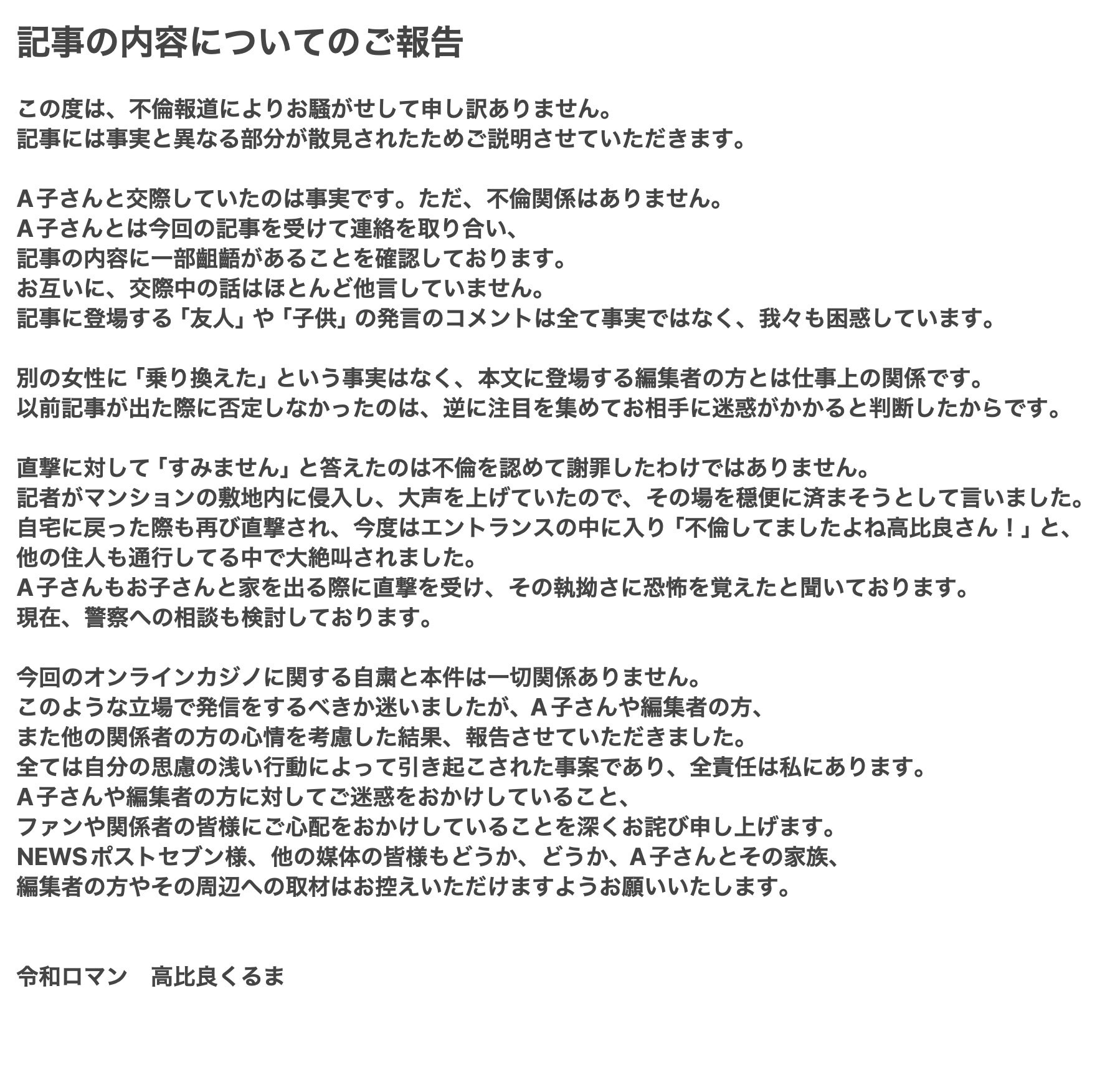 令和ロマンくるま、不倫記事について説明 Twitter Facebook はてブ LINE コピー 2025.02.21 スポンサーリンク ◇ 1: 名無し 2025/02/21(金) 21:45:15.36 ID:swb/HfmS0 不倫してないってよ ◇ 3: 名無し 2025/02/21(金) 21:47:50.16 ID:WV32Aj+k0 ふーん ◇ 15: 名無し 2025/02/21(金) 21:52:55.50 ID:XEHATTfv0 離婚する前は友達で、離婚したあとに交際ってことだろうな 大学生とかによくある 続きを読む
