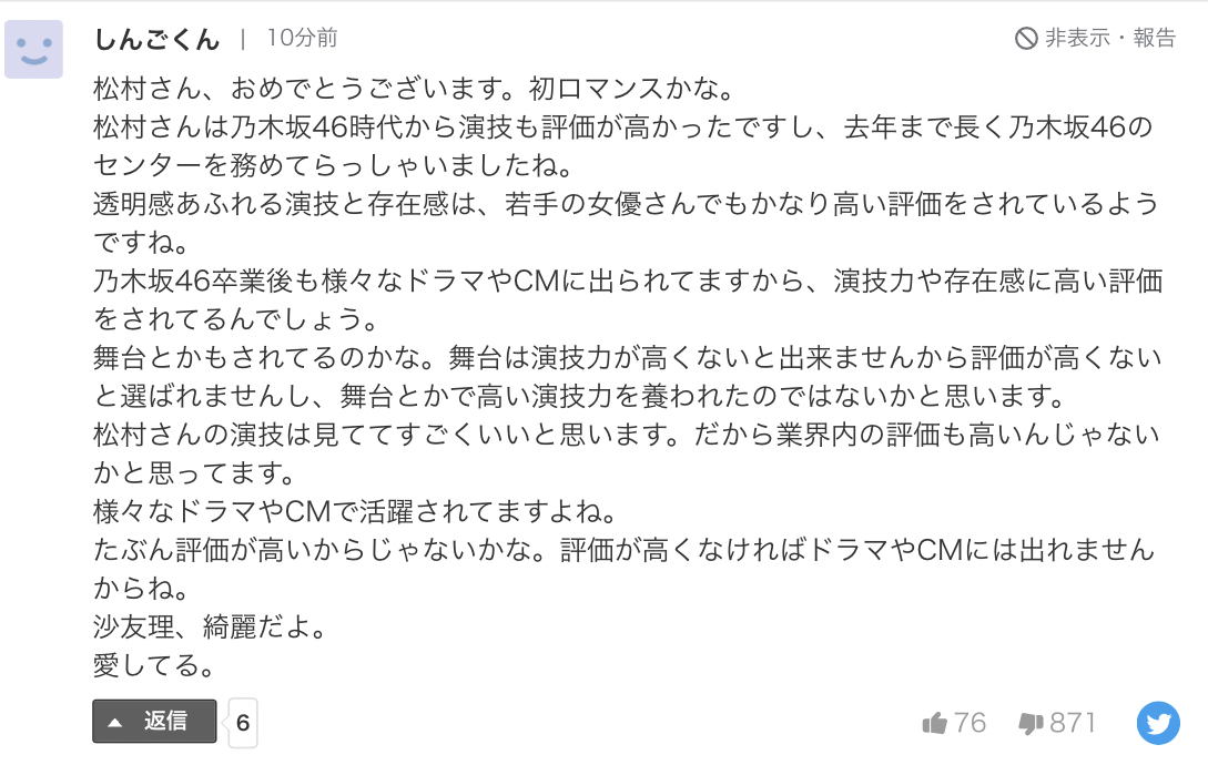 元乃木坂 松村沙友理のファンが今思っていることwwww (※画像あり) Twitter Facebook はてブ LINE コピー 2022.03.24 スポンサーリンク 1:風吹けば名無し:2022/03/23(水) 22:45:53.75 ID:nBQ1YH4+0.net 2:風吹けば名無し:2022/03/23(水) 22:47:05.26 ID:Ybpqfnz+0.net ファンとストーカーの鑑 続きを読む