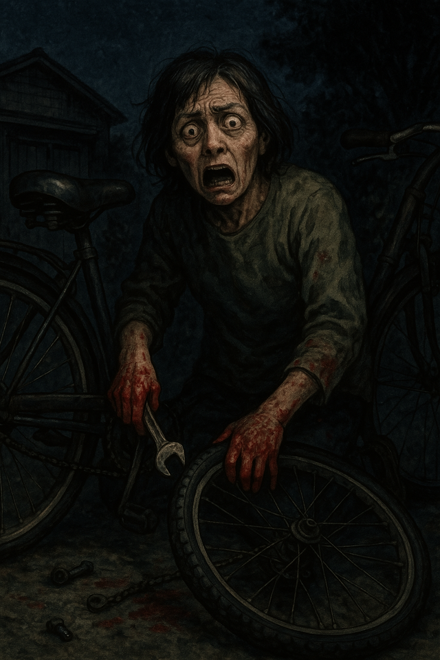 それは、夜、自分の自転車置き場から妙な音が聞こえてきた事で、
