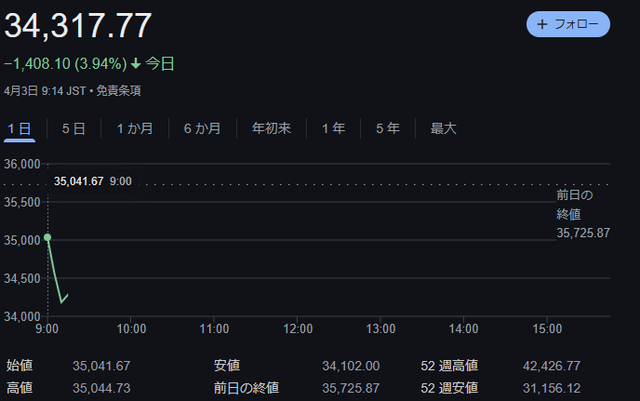 【悲報】日経平均株価、完全に終わる。トランプ相互関税の影響か Twitter Facebook はてブ LINE コピー 2025.04.03 スポンサーリンク 1: それでも動く名無し 2025/04/03(木) 08:34:12.43 ID:nj8ird2/0 久しく見たことない数字になってて草 続きを読む