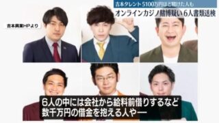 オンラインカジノ賭博容疑 吉本興業のタレント6人書類送検 5000万円以上を賭けた人も