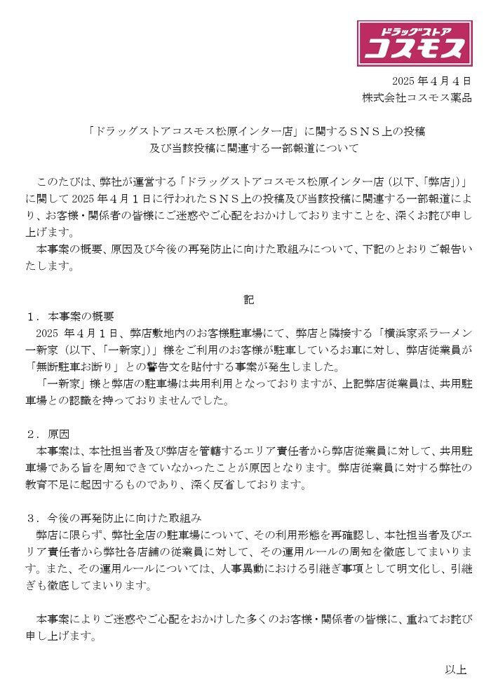 この駐車場に車停めてラーメン屋行ったらこれ。