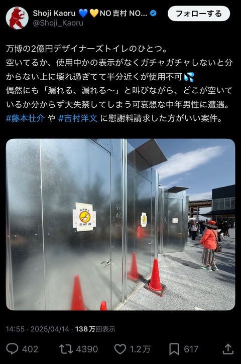万博で漏らせば維新に慰謝料請求しまくれるってマジ?