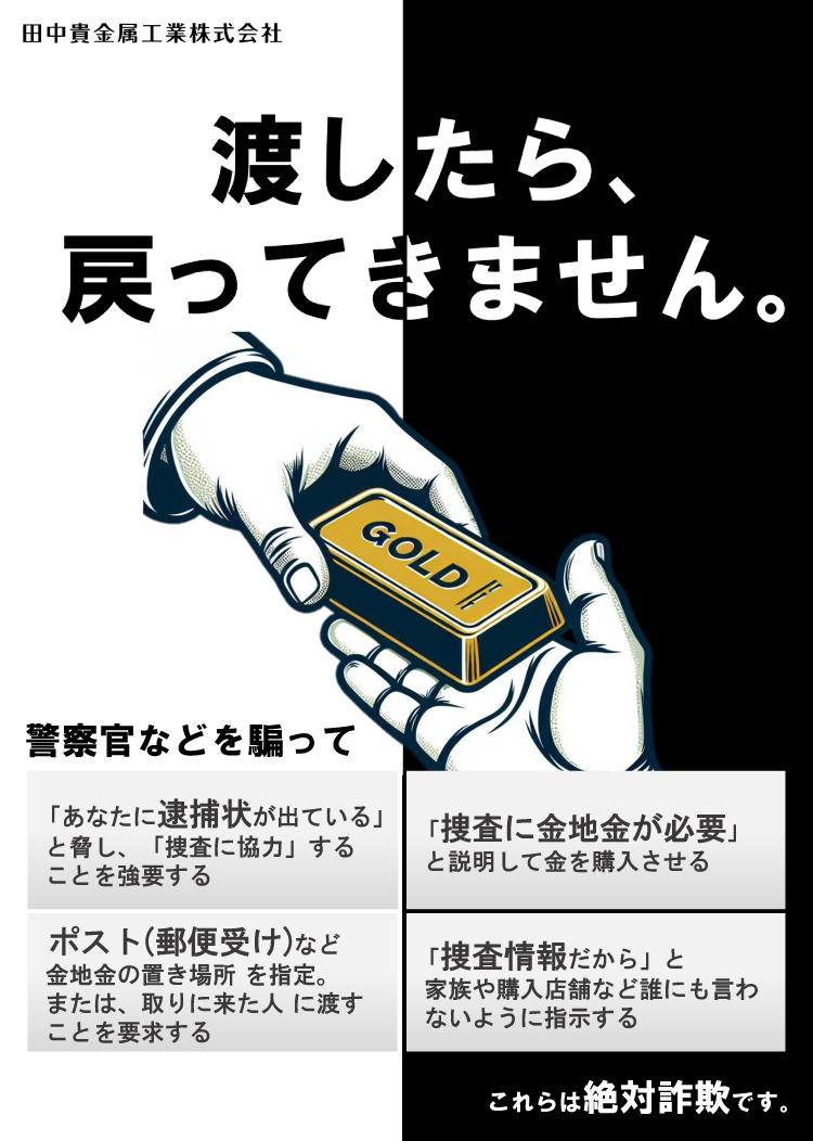 警察官らを名乗る人物から資産を金地金(金塊)に換えるよう指示され、だまし取られる詐欺被害が相次いでいる。警察庁によると昨年6~12月、少なくとも10都府県で21件計9億円超の被害を確認。金の価格高騰や持ち運びやすさが背景とされ、警察庁や貴金属店が注意を呼びかけ、対策にも乗り出した。