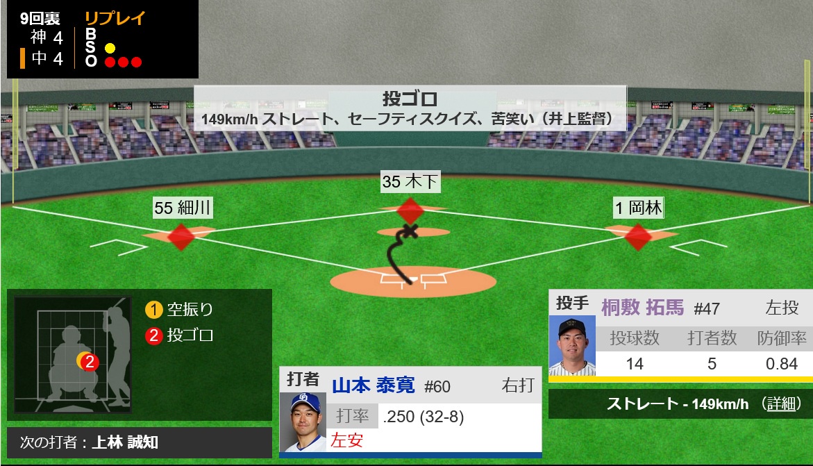 山本なぜかツーアウト満塁からバント、ホームアウトで無得点