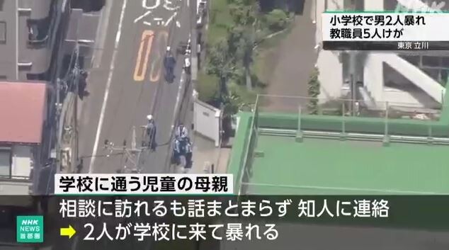 東京 立川 小学校で児童の母親の知人2人が暴れ教職員5人けが