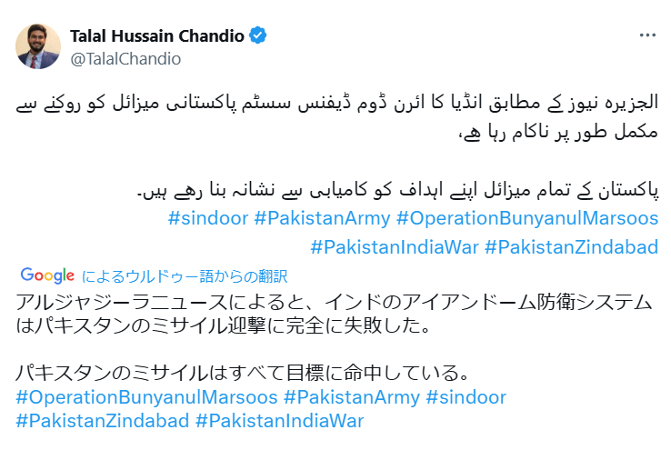 — Talal Hussain Chandio (@TalalChandio) May 10, 2025