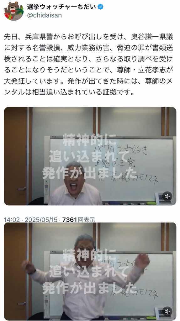 尊師・立花孝志が大発狂しています。