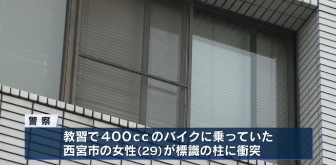 31日正午ごろ、西宮市内の教習所でバイクに乗っていた20代の女性が柱に衝突し、死亡する事故がありました。