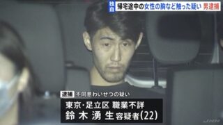 取り調べに対し鈴木容疑者は、「女性の胸を触りたくて我慢ができずにやってしまった」と容疑を認めているということです。