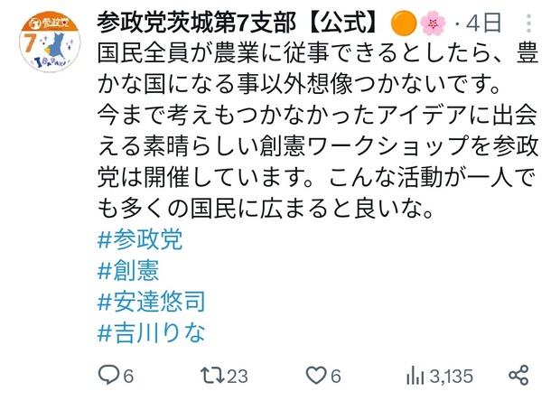 【画像】参政党「みんなが農家になれば国が豊かになる!!!」