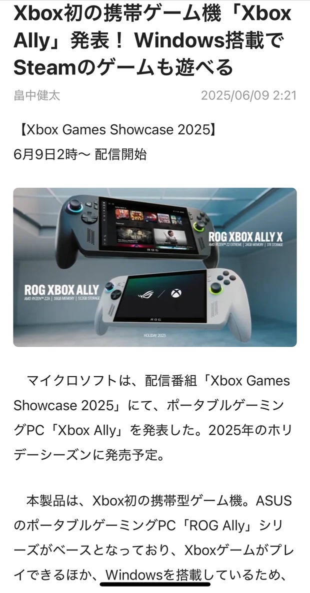 Xbox初の携帯ゲーム機「Xbox Ally」発表! Windows搭載でSteamのゲームも遊べる(GAME Watch) - Yahoo!ニュース