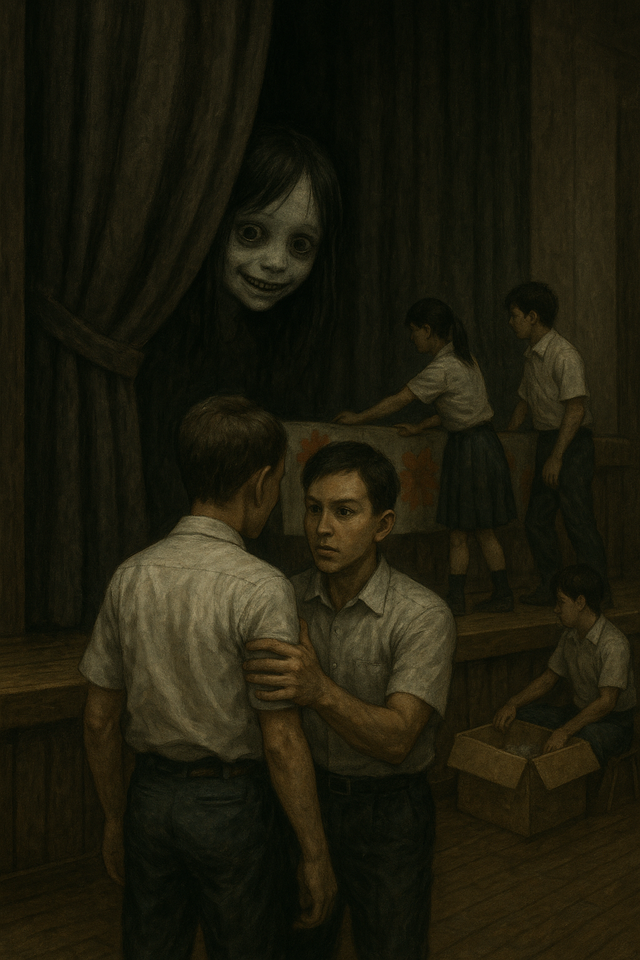 文化祭前日の放課後、5人(俺、先輩、A、B、C)で体育館の舞台上の飾りつけや、