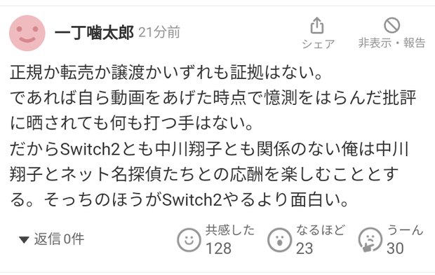 【画像】中川翔子の転売の件、カッコ良すぎるヤフコメ現るwwwww Twitter Facebook はてブ LINE コピー 2025.06.17 スポンサーリンク 1 : 以下、?ちゃんねるからVIPがお送りします :2025/06/17(火) 12:55:26.548 ID:3VSsUSqj0.net2 : 以下、?ちゃんねるからVIPがお送りします :2025/06/17(火) 12:56:23.740 ID:8KsTrRhR0.net ザ・チー牛って感じ3 : 以下、?ちゃんねるからVIPがお送りします :2025/06/17(火) 12:57:22.182 ID:rTe+nX1H0.net うわあ…って声出た転載元スレッド:https://viper.2ch.sc/test/read.cgi/news4vip/1750132526/ 続きを読む
