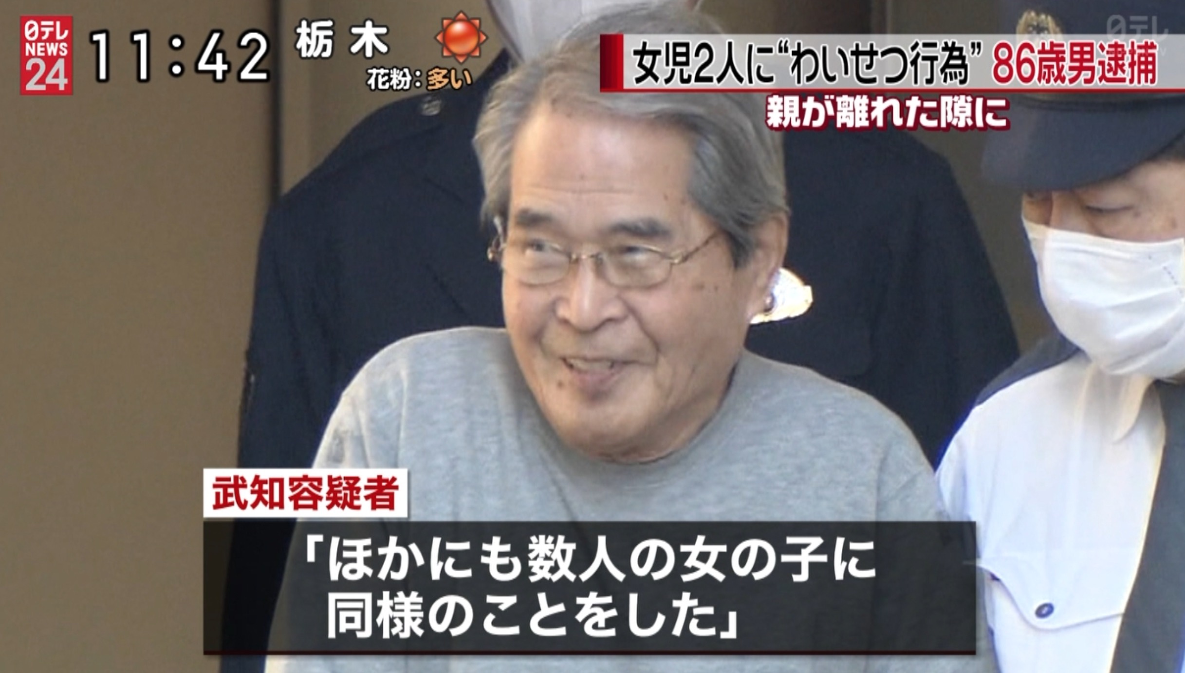 逮捕は5日。署によると、容疑者は「1人の女の子にはチューをした。もう1人の女の子の下半身は触った。悪いことをしました」と容疑を認めているという。