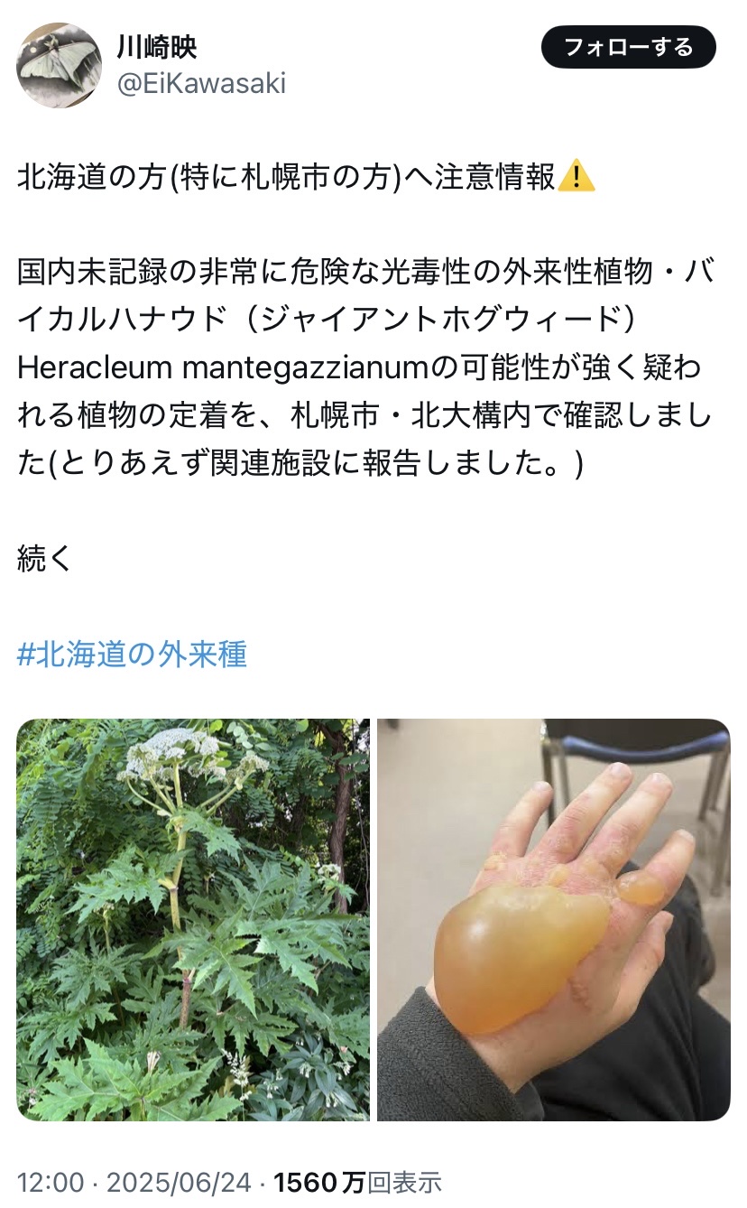 【画像】北海道で超危険な外来植物が見つかるwwwwwwwwwww Twitter Facebook はてブ LINE コピー 2025.06.25 スポンサーリンク 1:それでも動く名無し:2025/06/24(火) 19:28:46.45 ID:mIkverGi0.net 2:それでも動く名無し:2025/06/24(火) 19:29:45.27 ID:oy88udKP0.net 手こわ 続きを読む