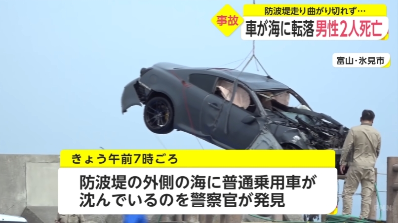 車が海に転落 男性2人死亡 防波堤走り曲がりきれず...