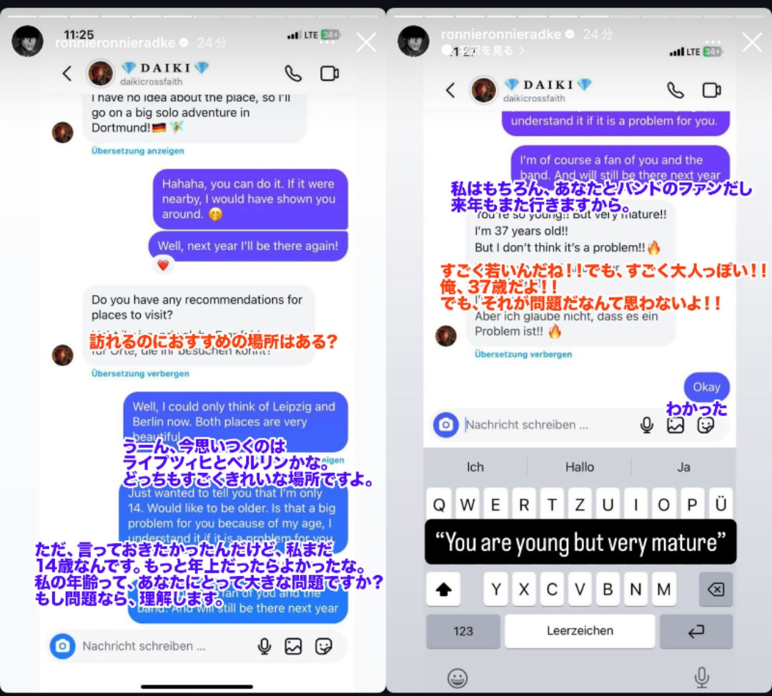 【悲報】ロックバンドCrossfaithさん、14歳少女にDMを送ってしまい完全終了する… Twitter Facebook はてブ LINE コピー 2025.06.29 スポンサーリンク 1:以下、?ちゃんねるからVIPがお送りします:2025/06/28(土) 13:38:41.683 ID:YU0IzNrQ0 海外の大物ミュージシャンにリークされて完全終了中… 2:以下、?ちゃんねるからVIPがお送りします:2025/06/28(土) 13:39:29.423 ID:YU0IzNrQ0 あんなに好きだったのに…Crossfaith嘘だろ… 続きを読む