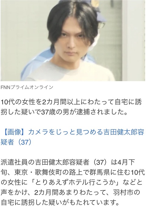 【悲報】イケメン(37)、10代少女と2ヶ月間同棲した罪で逮捕wwwwwwwww Twitter Facebook はてブ LINE コピー 2025.07.07 スポンサーリンク 1:以下、?ちゃんねるからVIPがお送りします:2025/07/06(日) 16:39:45.819 ID:r8oZTlBX0 2:以下、?ちゃんねるからVIPがお送りします:2025/07/06(日) 16:40:22.701 ID:3kd4/ZUy0 何でキメ顔なんだよwww 続きを読む