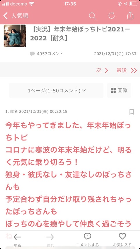 【悲報】ガルちゃんさん、大晦日に悲しいトピが立ってしまうwwwwwwwww Twitter Facebook はてブ LINE コピー 2021.12.31 スポンサーリンク 1:風吹けば名無し:2021/12/31(金) 17:35:51.52 ID:F6/GHHaM0.net 2:風吹けば名無し:2021/12/31(金) 17:36:11.65 ID:ZUINghxYM.net VIPみたいやな 3:風吹けば名無し:2021/12/31(金) 17:36:22.55 ID:i0+HcMsPM.net 人生終わってる部やんけ 4:風吹けば名無し:2021/12/31(金) 17:37:14.47 ID:fn/1Wdbr0.net めっちゃ伸びてて草 続きを読む