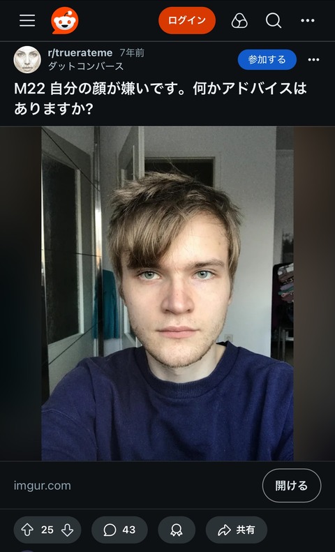 【画像】若者 「自分の顔が嫌い。コンプレックスを直せない。」 Twitter Facebook はてブ LINE コピー 2025.07.13 スポンサーリンク 1:それでも動く名無し:2025/07/06(日) 11:51:34.12 ID:b0F/08h40.net うーんこの 2:それでも動く名無し:2025/07/06(日) 11:52:22.93 ID:AV/XMuTV0.net あたしホントぶさいくだから~♪ 3:それでも動く名無し:2025/07/06(日) 11:52:32.63 ID:K2opuF0w0.net 顔なんかなブサイクなら見ないだけ。 人と心が通じてるってのが妄想 続きを読む