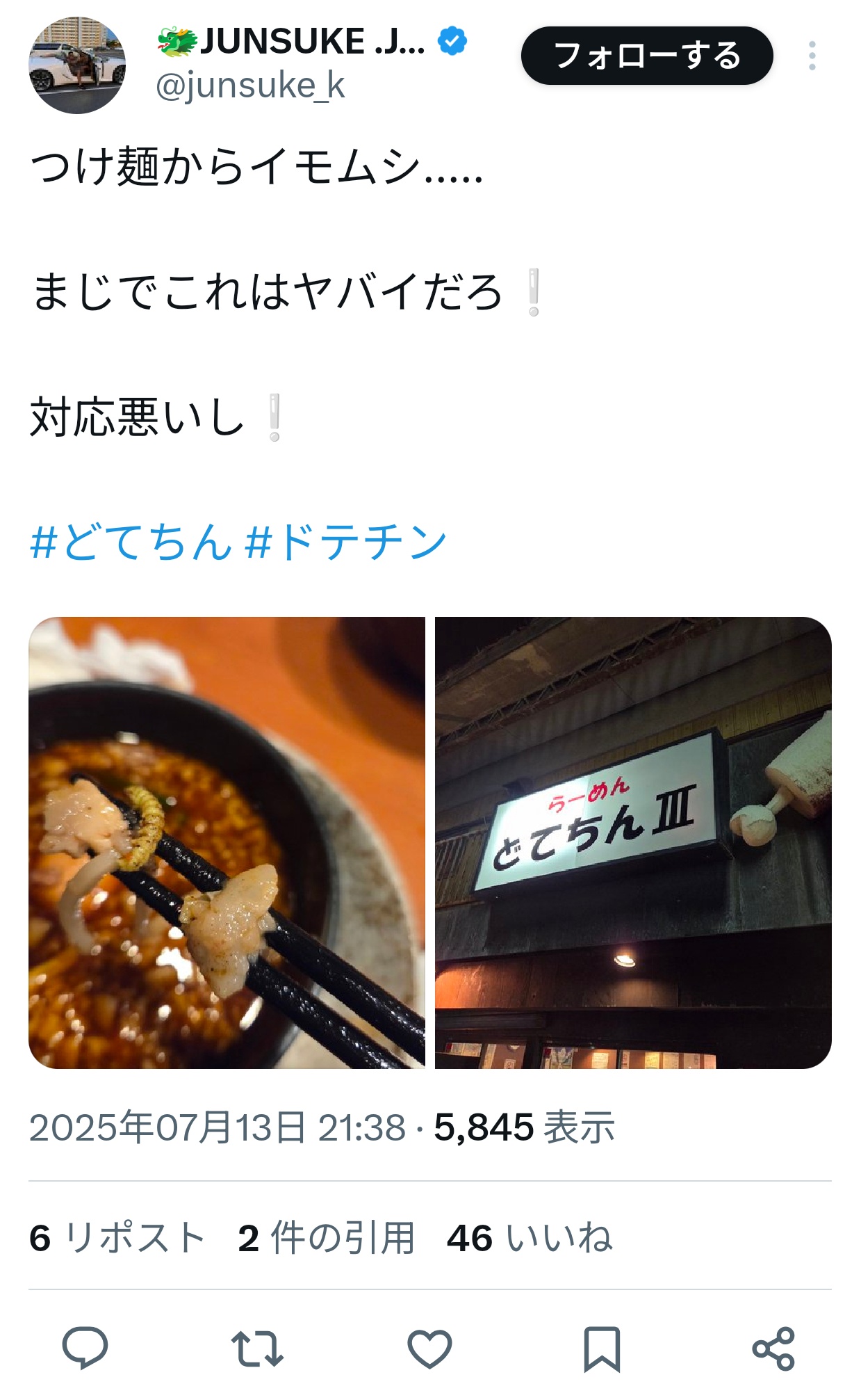 【画像】X民「ラーメン屋に行ったらトッピングにイモムシ入ってたんだが!!!😡😡💢💢💢」 Twitter Facebook はてブ LINE コピー 2025.07.14 スポンサーリンク 1:以下、?ちゃんねるからVIPがお送りします:2025/07/13(日) 22:27:25.428 ID:uTkGxQbhM 昆虫食じゃん 3:以下、?ちゃんねるからVIPがお送りします:2025/07/13(日) 22:28:14.885 ID:A7gW6U3S0 貴重なタンパク質 続きを読む