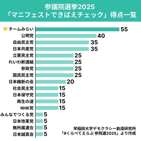 【画像】早稲田大学「まともな政党1位はチームみらい、2位は公明党、3位自民党です」 Twitter Facebook はてブ LINE コピー 2025.07.14 スポンサーリンク 1:それでも動く名無し:2025/07/14(月) 07:05:03.39 ID:Ww4biYVQ0.net 参考にしてね 3:それでも動く名無し:2025/07/14(月) 07:10:50.09 ID:0uog91u60.net さすがですね 4::2025/07/14(月) 07:12:04.65 ID:k7m0CKXL0.net パワポのできばえ的な話? 続きを読む