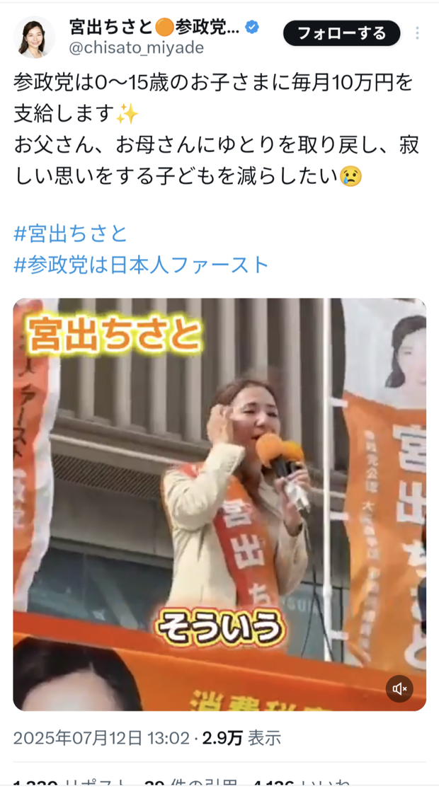 参政党は0~15歳のお子様に毎月10万円を支給します!