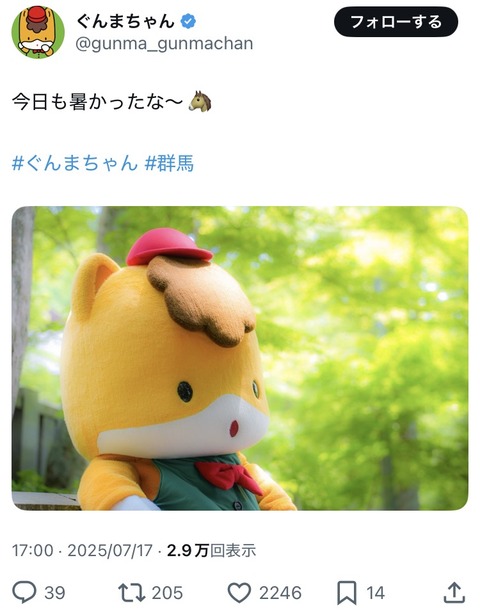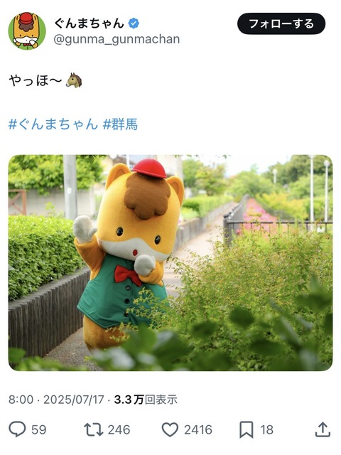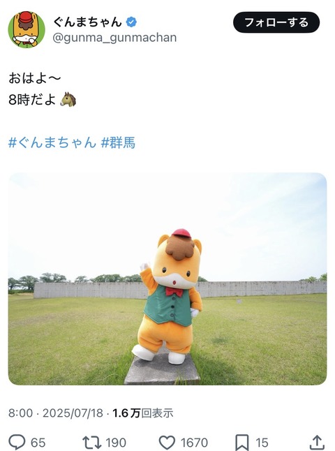 【悲報】ぐんまちゃん、「あの投稿」以降漂白されてしまうwwwwww (※画像あり) Twitter Facebook はてブ LINE コピー 2025.07.18 スポンサーリンク 1:それでも動く名無し:2025/07/18(金) 13:53:21.34 ID:T1/gW51E0 ↓ 4:それでも動く名無し:2025/07/18(金) 14:01:59.18 ID:WZIKKf8hM これはトミージョンされてるは 続きを読む