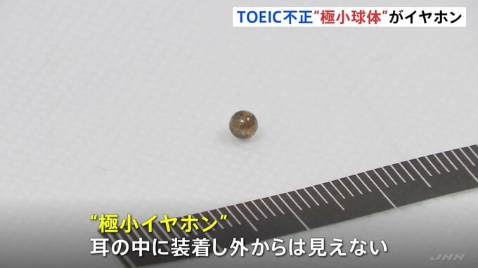 およそ3ミリの米粒ほどの小さい球体。この道具は先月7日、TOEICの試験場で中国籍の男女10人がカンニングしようとしたとして、警視庁に事情聴取された際に押収されたものです。