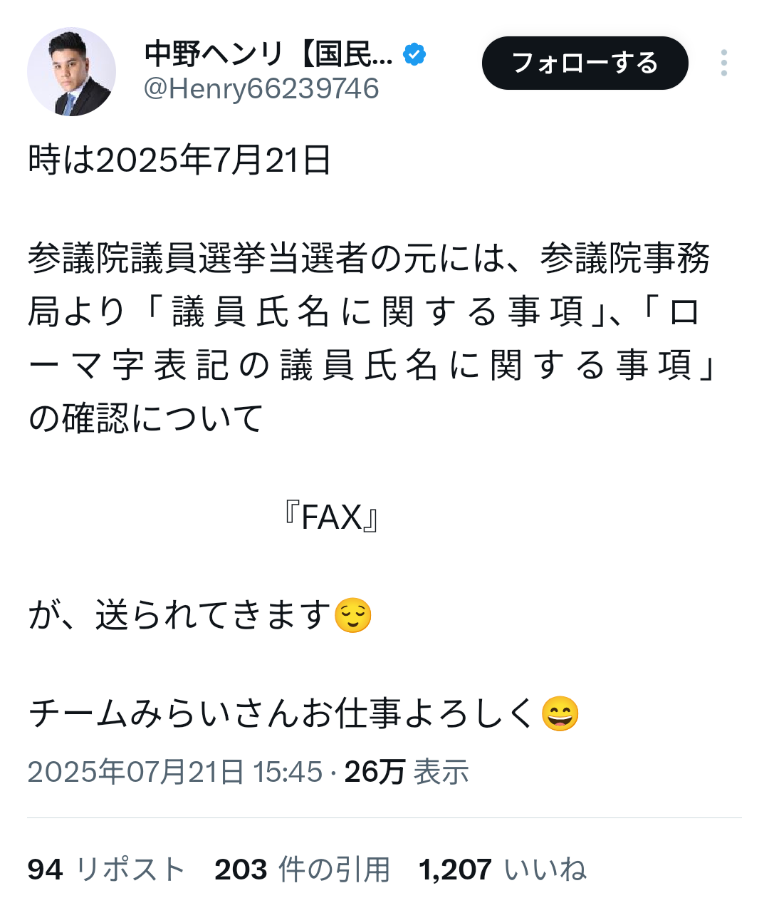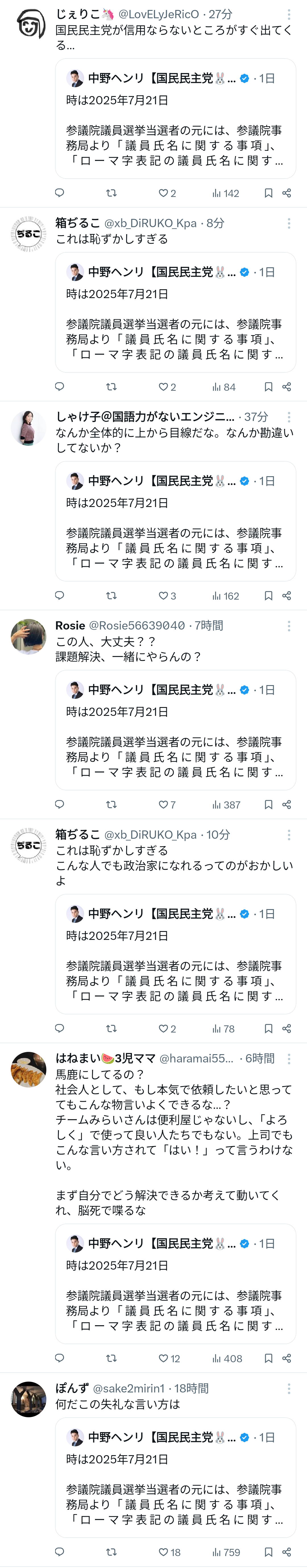 国民民主党議員「永田町は未だにFAXが主流なんです。おい、チームみらい!これ直しとけよ」→炎上wwwwwwwww Twitter Facebook はてブ LINE コピー 2025.07.22 スポンサーリンク 1:それでも動く名無し:2025/07/22(火) 20:40:49.18 ID:J9i5I2ot0 何故 2:それでも動く名無し:2025/07/22(火) 20:41:08.61 ID:J9i5I2ot0 なんか草 4: 警備員[Lv.65][苗]:2025/07/22(火) 20:42:17.73 ID:Kb3PpnSq0 民民は何故いつも上から目線なのか 続きを読む