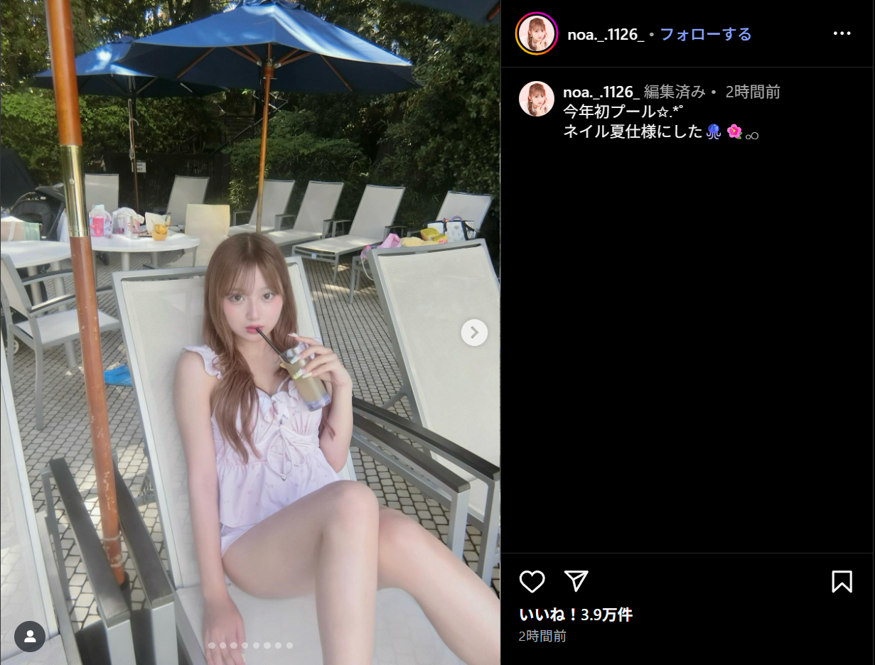 タレントの辻希美と俳優の杉浦太陽の長女・希空(のあ)が23日、自身のインスタグラムを更新。今年初めてプールを訪れたことを明かしている。