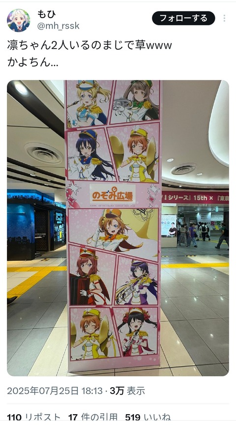 【画像】ラブライブ運営さん、許されざるミスをしてしまう… Twitter Facebook はてブ LINE コピー 2025.07.26 スポンサーリンク 1:以下、?ちゃんねるからVIPがお送りします:2025/07/25(金) 23:53:15.877 ID:hkqYj5IL0 2:以下、?ちゃんねるからVIPがお送りします:2025/07/25(金) 23:53:37.217 ID:hkqYj5IL0 マジかよ… 3:以下、?ちゃんねるからVIPがお送りします:2025/07/25(金) 23:53:49.830 ID:q8QFeDQg0 ワロタ 続きを読む