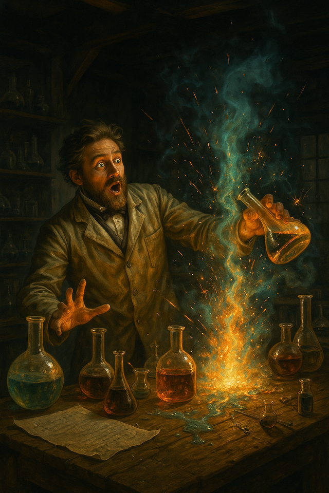 1中 誤って実験装置に微量に入り込んだ酸素により謎の白色固体が生成(ポリエチレンの発見)