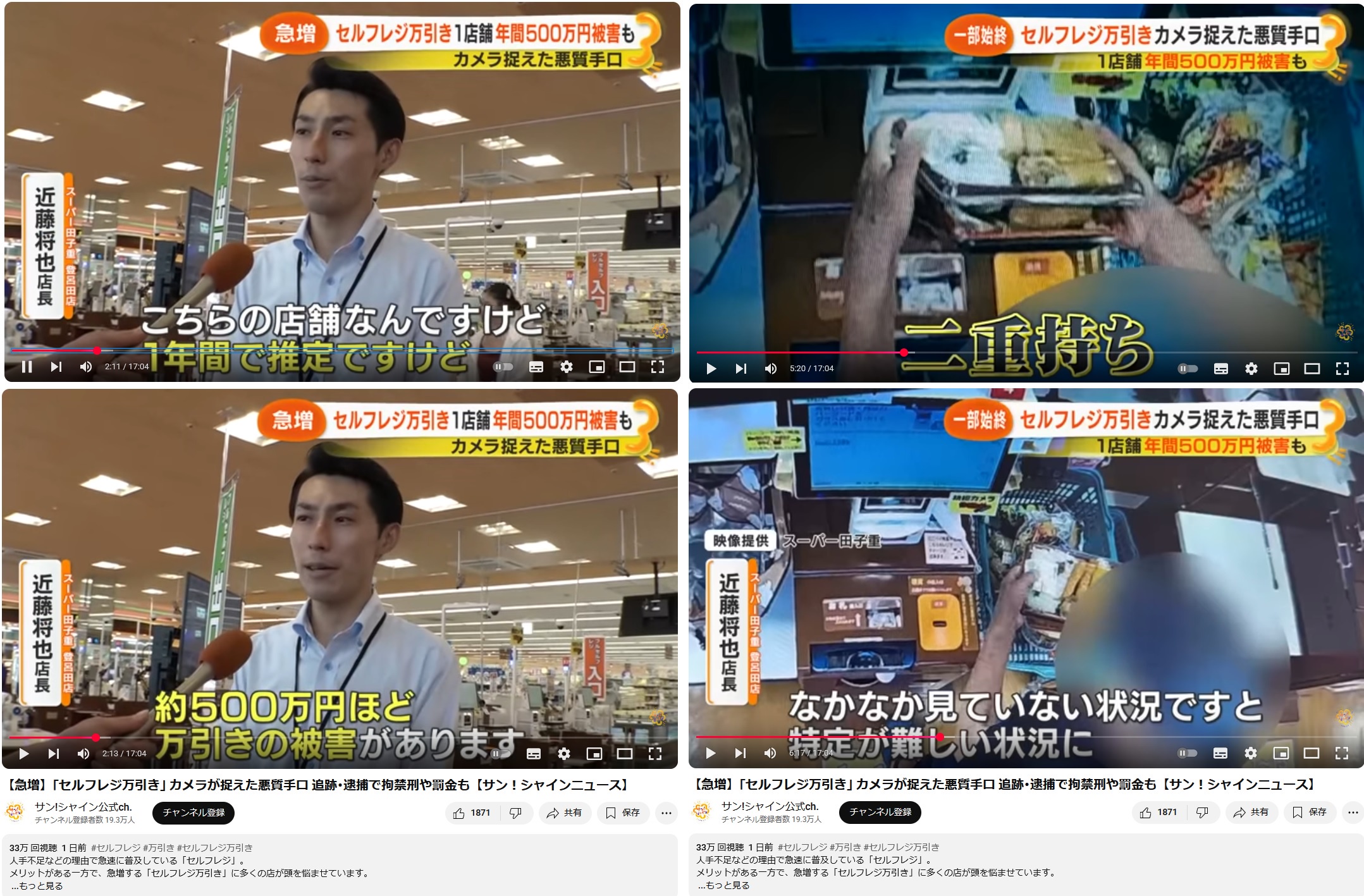 セルフレジ万引きの手口が公開される Twitter Facebook はてブ LINE コピー 2025.08.03 スポンサーリンク ◇ 1: 名無し 2025/08/02(土) 12:34:00.65 0 ヤバい ◇ 5: 名無し 2025/08/02(土) 12:35:39.18 0 必殺二重持ち ◇ 19: 名無し 2025/08/02(土) 12:57:53.55 0 ビールのやつ気付かないケース多そう 続きを読む