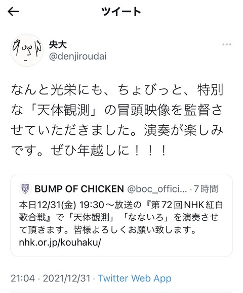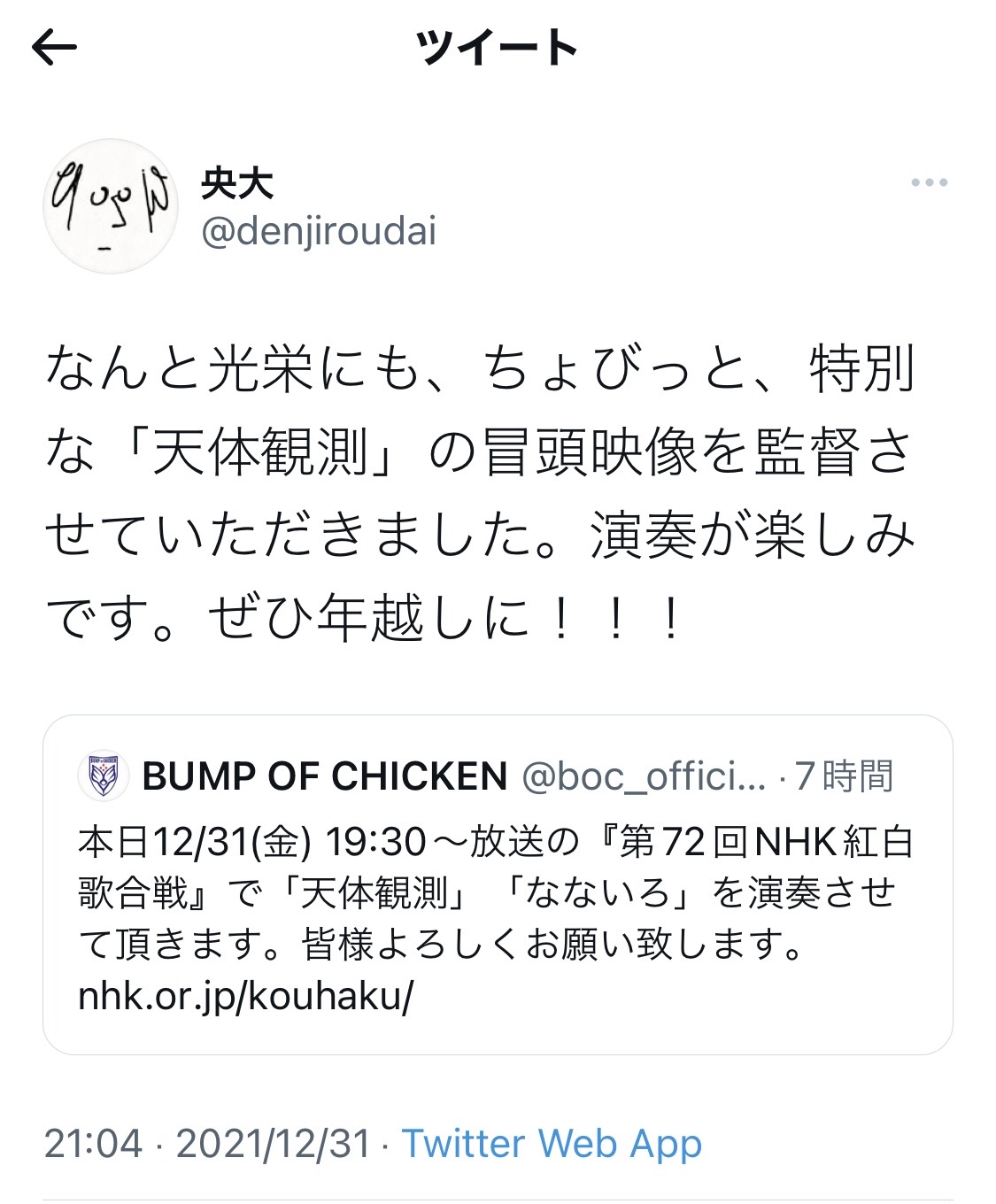 BUMPアンチさん、天体観測の映像監督をしてしまう… Twitter Facebook はてブ LINE コピー 2022.01.01 スポンサーリンク 1:風吹けば名無し:2021/12/31(金) 23:32:36.22 ID:H2wLJJAc0.net さっきの「天体観測」の映像を編集した人めちゃくちゃバンプ嫌いそうで草 2:風吹けば名無し:2021/12/31(金) 23:33:07.75 ID:GspH2YeJM.net ええやん 3:風吹けば名無し:2021/12/31(金) 23:33:28.58 ID:Y0GYJbBu0.net 良かったで 4:風吹けば名無し:2021/12/31(金) 23:33:48.41 ID:EN9WARnX0.net 好きになる方法教えてもらったんやろ 続きを読む