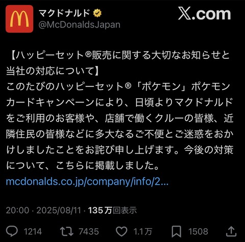 【画像】マクドナルドさん、ポケカハッピーセット騒動をガチ謝罪するも炎上がおさまらないwwwwwwwwwwwwwwwwwwww Twitter Facebook はてブ LINE コピー 2025.08.12 スポンサーリンク 1:以下、?ちゃんねるからVIPがお送りします:2025/08/11(月) 20:43:38.717 ID:DncMtUTr0.net マックももう終わりだね 3:以下、?ちゃんねるからVIPがお送りします:2025/08/11(月) 20:44:15.081 ID:FXgv5VIp0.net 売り終わったあとだからどうでもいいんだろうな 続きを読む