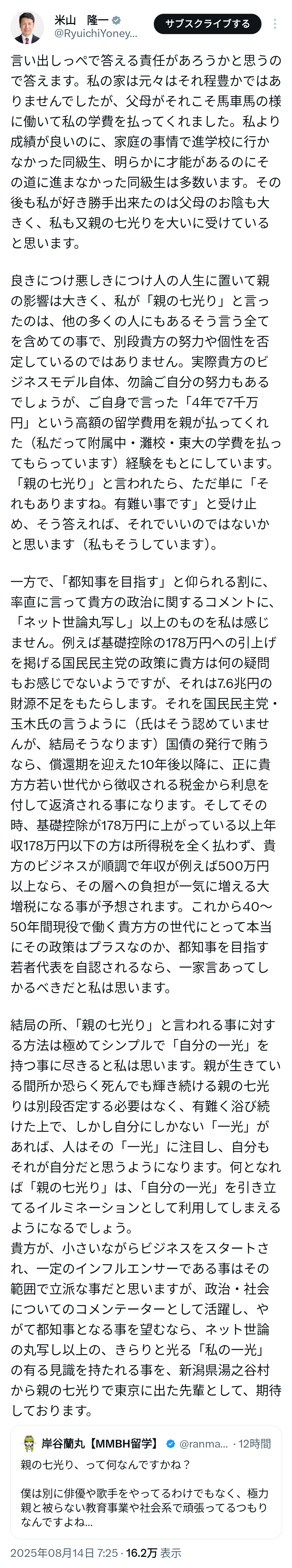岸谷五朗の息子、岸谷蘭丸(教育関係実業家)のチャンネルに同じ立憲議員が出てることに立腹