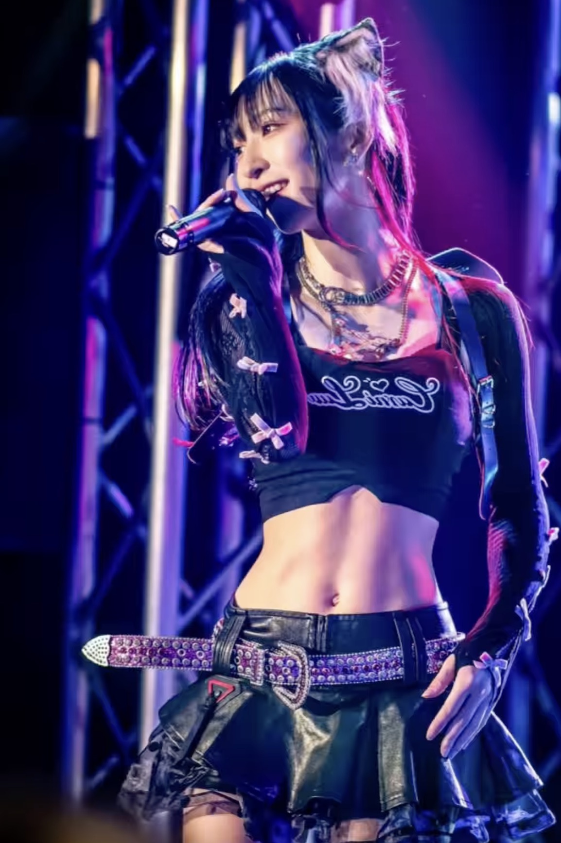 自然体のオフモードから一転、宮脇さんはかわいらしい猫耳に、存在感のあるネックレスやベルトなどをあしらい、ブラックで統一されたセクシーかつロックな衣装を身にまとって登場。ステージ上では堂々としたパフォーマンスを披露していました。