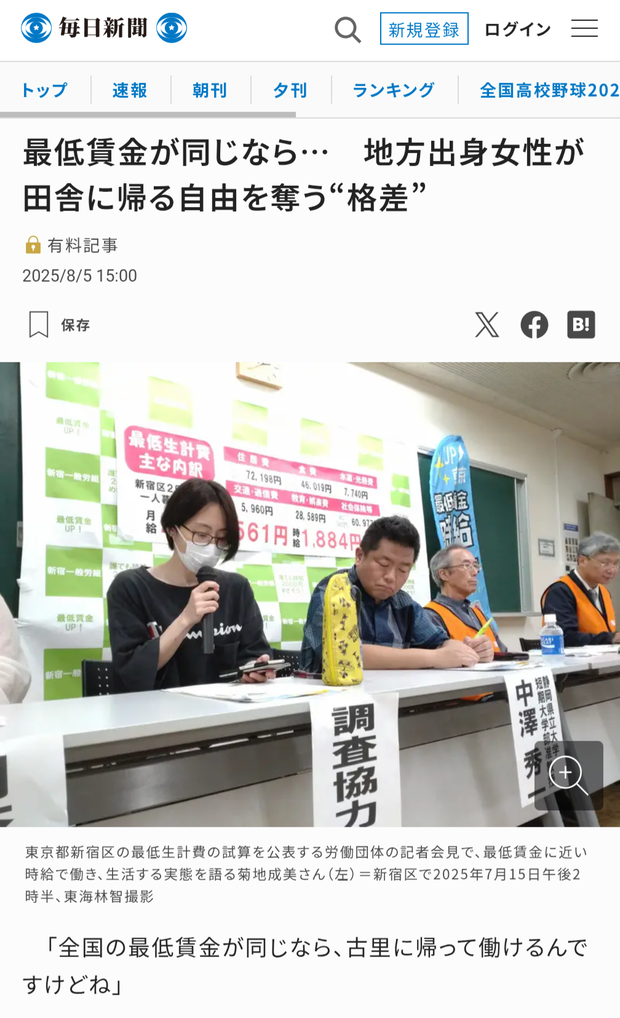 最低賃金が同じなら… 地方出身女性が田舎に帰る自由を奪う“格差” | 毎日新聞