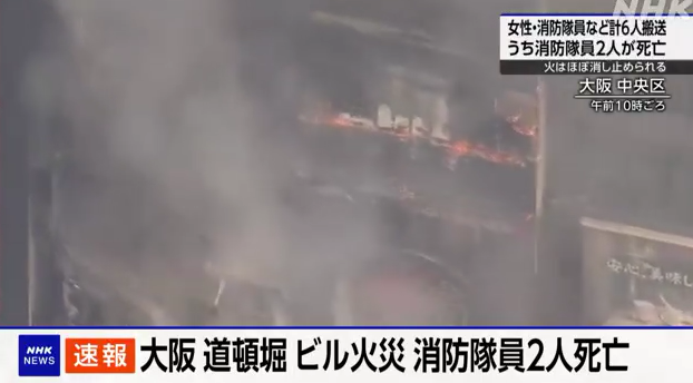 【大阪ミナミ・道頓堀】観光地の7階建てビルで大規模火災 6人搬送・消防隊員2人死亡 Twitter Facebook はてブ LINE コピー 2025.08.18 スポンサーリンク 1: ぐれ ★ 2025/08/18(月) 14:57:50.51 ID:SqW1r+2k9 大阪 ミナミ 道頓堀付近でビル火災 消防隊員2人死亡 | NHK | 大阪府 https://www3.nhk.or.jp/news/html/20250818/k10014896661000.html 続きを読む
