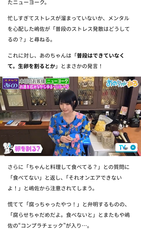 【画像】あのちゃん「ストレス解消は卵を割って捨てること」wwwwwwwww Twitter Facebook はてブ LINE コピー 2025.08.25 スポンサーリンク 1:それでも動く名無し:2025/08/25(月) 13:07:47.66 ID:3QCvB4RCM.net 2:それでも動く名無し:2025/08/25(月) 13:10:10.86 ID:1EdPOh8T0.net 卵一つ産む度に鶏は苦しんでるんやで、それで死ぬ奴もいる 何様だこいつ 続きを読む