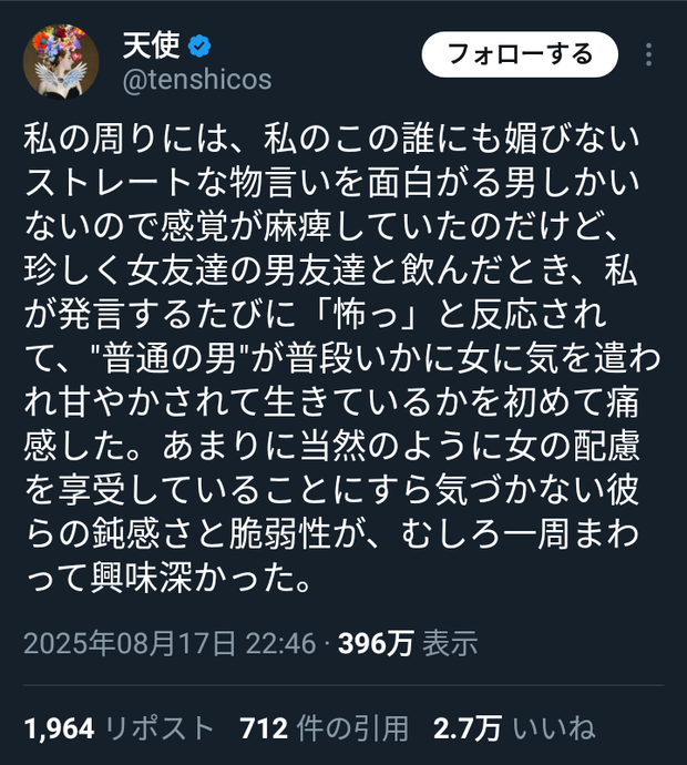 【悲報】女さん「男ってマジで甘やかされてるよね」←2.7万いいね!