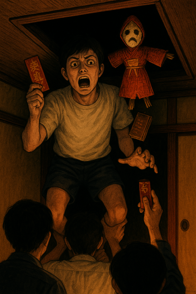A男『御祓いの為にお札が絵やツボの裏、押し入れの中に貼ってあるんだってよ』