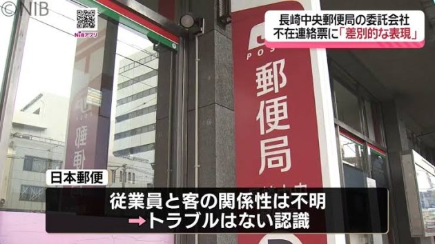 長崎中央郵便局で「客への不在連絡票に差別的な表現を手書きで記載」集配委託会社の従業員は解雇《長崎》(2025年8月27日掲載)|NIB NEWS NNN